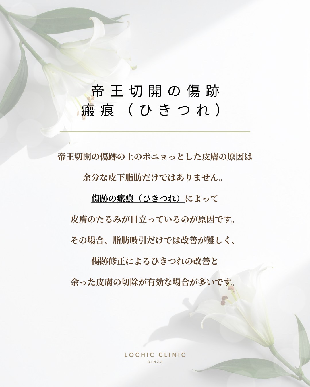 お腹のたるみや皮膚の余りでお悩みの方へ。 LOCHIC CLINIC GINZAでは余分な皮膚を切除し、すっきりとした腹部ラインへ導く「タミータック(腹部形成)」をご提供しております。 加齢や出産後の体型変化、急激な体重変動などにより生じた皮膚のたるみは、脂肪吸引のみでは改善が難しい場合があります。 そのようなケースでは、たるみの原因となる余剰皮膚を取り除き、より美しく整ったボディラインを形成することが可能です。 ■ミニタミータック(下腹部のたるみ改善) 下腹部に限定したたるみを改善したい方へ 通常価格 ¥880,000(税込)→ ¥528,000(税込) ※別途麻酔代(静脈麻酔 ¥88,000/全身麻酔 ¥220,000) ■フルタミータック(腹部全体のたるみ改善) お腹全体のたるみをしっかり改善したい方へ 通常価格 ¥1,650,000(税込)→ ¥990,000(税込) ※別途麻酔代(全身麻酔 ¥220,000) ■マミーメイクオーバーにも対応 出産後の体型変化に対し、バスト・腹部・ボディラインをトータルで整える「マミーメイクオーバー」としてのご提案も可能です。 二児の母であり、実際に施術を経験した女性医師が、患者様一人ひとりのお悩みに寄り添いながら、最適な治療プランをご提案いたします。 ■帝王切開後の傷跡について 帝王切開の傷跡周囲に見られるたるみは、単なる脂肪ではなく、瘢痕(ひきつれ)が原因となる場合があります。 その場合、脂肪吸引のみでは改善が難しく、傷跡の修正と余剰皮膚の切除を組み合わせることで、より自然で美しい仕上がりが期待できます。 ■担当医 日本形成外科学会専門医・指導医 小山麻衣 ■リスク・副作用 出血、血腫、感染、疼痛、腫れ、内出血、傷跡(ケロイド)、左右差、皮膚のつっぱり感、感覚鈍麻、創部離開、色素沈着等 ご自身の体型にお悩みの方は、ぜひ一度ご相談ください。 患者様の「なりたい」を叶えるため、サポートいたします。![]()